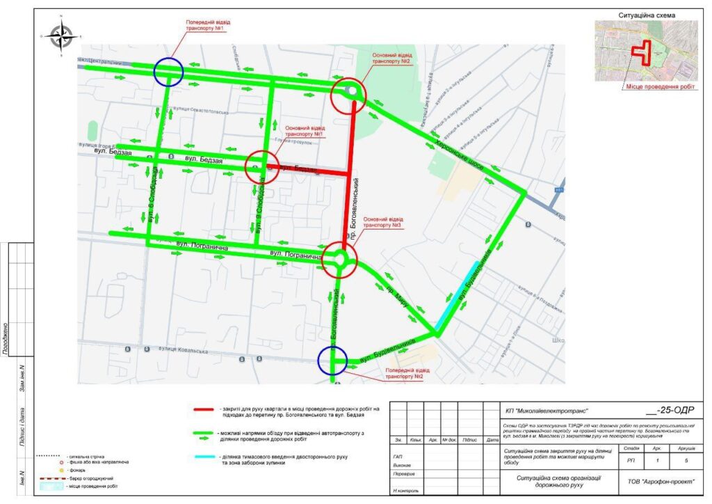 У зв’язку з проведенням зазначених робіт зміниться організація руху на вулиці Будівельників — на ділянці від проспекту Миру до Херсонського шосе. Тут запровадять двосторонній рух та обмежать можливість тривалої зупинки автомобілів.