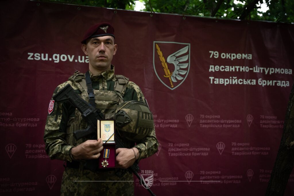 Командир 79 окремої десантно-штурмової Таврійської бригади полковник Едуард Колодій вручив нагороди десантникам, які відзначились у боях з окупантами.