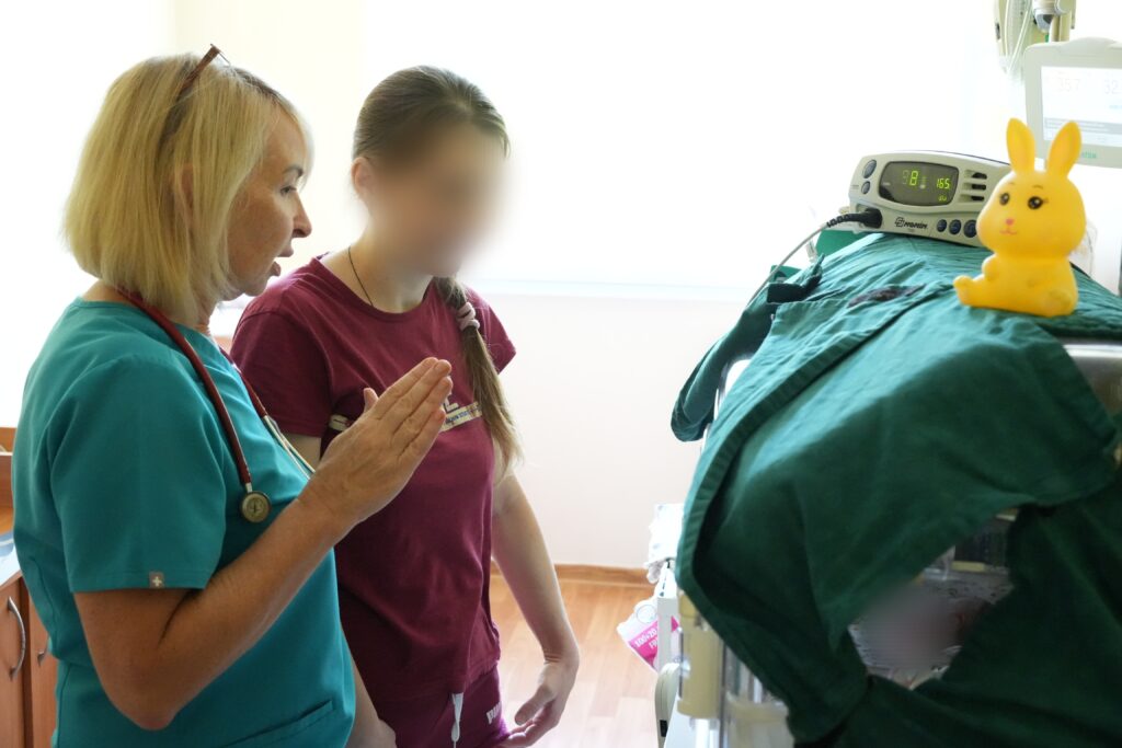 Завідувачка відділення для новонароджених та недоношених дітей Наталія Мартьянова пояснила, що відділення виходжує дітей вагою від 500 г та часто стикається з ретинопатією недоношених. Раніше для лікування таких дітей залучали фахівців з Одеси, тепер же завдяки новій лазерно-коагуляційній техніці лікарі можуть проводити процедури безпосередньо у своєму відділенні.