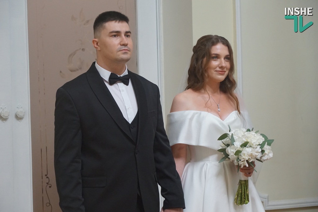 Наречений Владислав з Луганщини та наречена Дар’я з Очакова нічого не скривали від журналістів. Вони вчились на одному факультеті вишу, але «побачили» один одного тільки два роки тому, під кінець навчання. Обидва військовослужбовці, але служать у різних підрозділах. На питання, про що мріють, Дар’я відповіла за обох: «Про кінець війни, перемогу, мирне життя. Мирне життя наших майбутніх діточок».