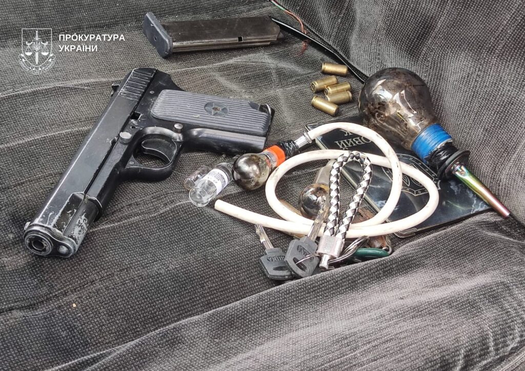 Під час санкціонованих судом обшуків за місцем проживання організатора виявлено та вилучено психотропні речовини, гранату РГД-5, два пістолети та набої калібру 5,45 мм. Через це йому також пред’явлено обвинувачення за незаконне зберігання, придбання, носіння вогнепальної зброї, бойових припасів та вибухових пристроїв без передбаченого законом дозволу (ч. 1 ст. 263 КК України).