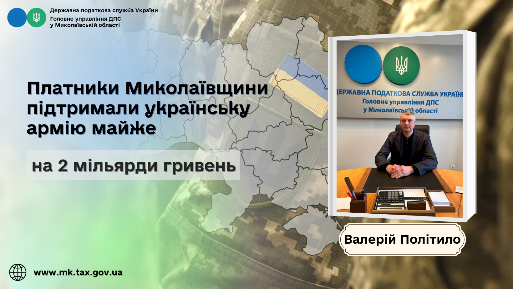 Платники податків Миколаївщини активно підтримують Збройні Сили України, сумлінно та прозоро сплачуючи військовий збір.