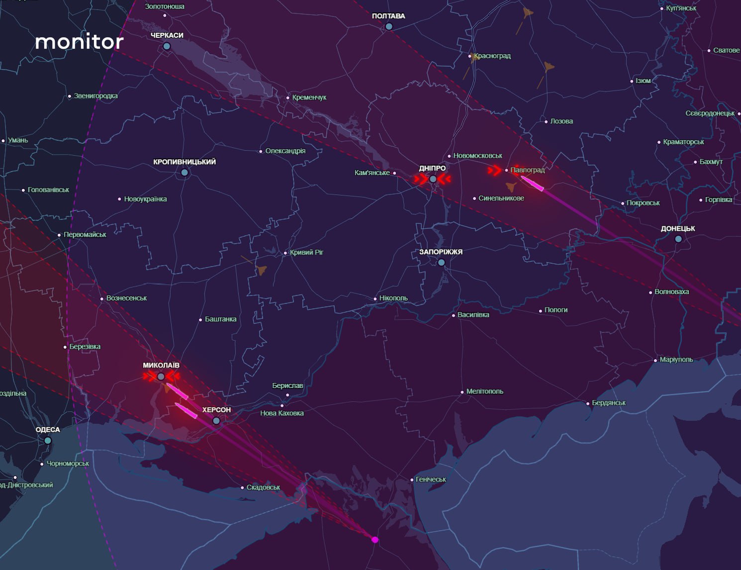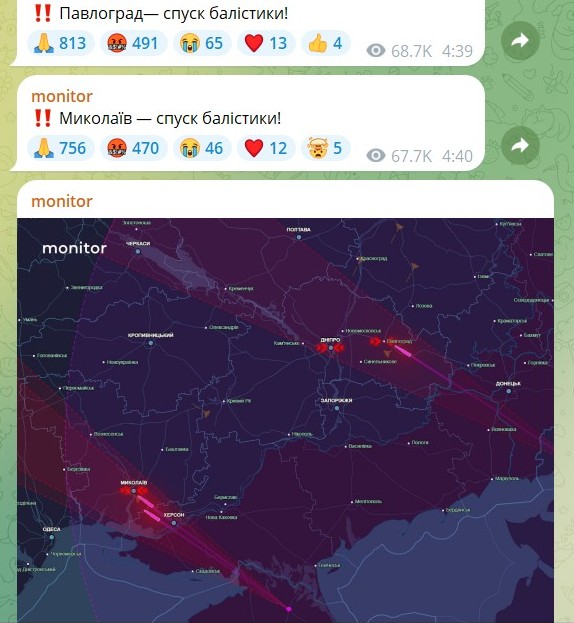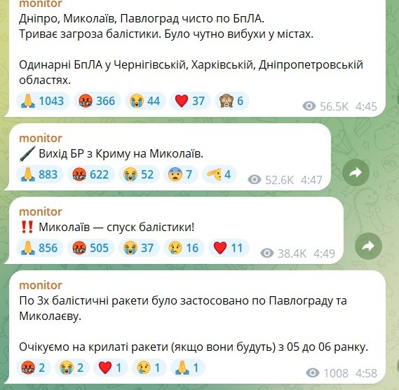 За даними моніторів, Миколаїв був атакований 3 балістичними ракетами.