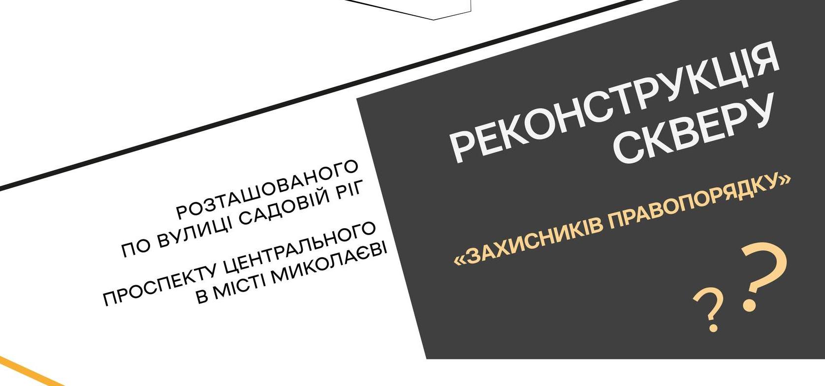 Як повідомляло Інше ТВ, 10 квітня  стартував відкритий всеукраїнський архітектурний конкурс на кращу проєктну пропозицію реконструкції скверу «Захисників правопорядку», розташованого по вулиці Садова ріг проспекту Центрального в місті Миколаєві. 12 травня стало відомо, що на конкурс зареєструвалось 30 учасників.