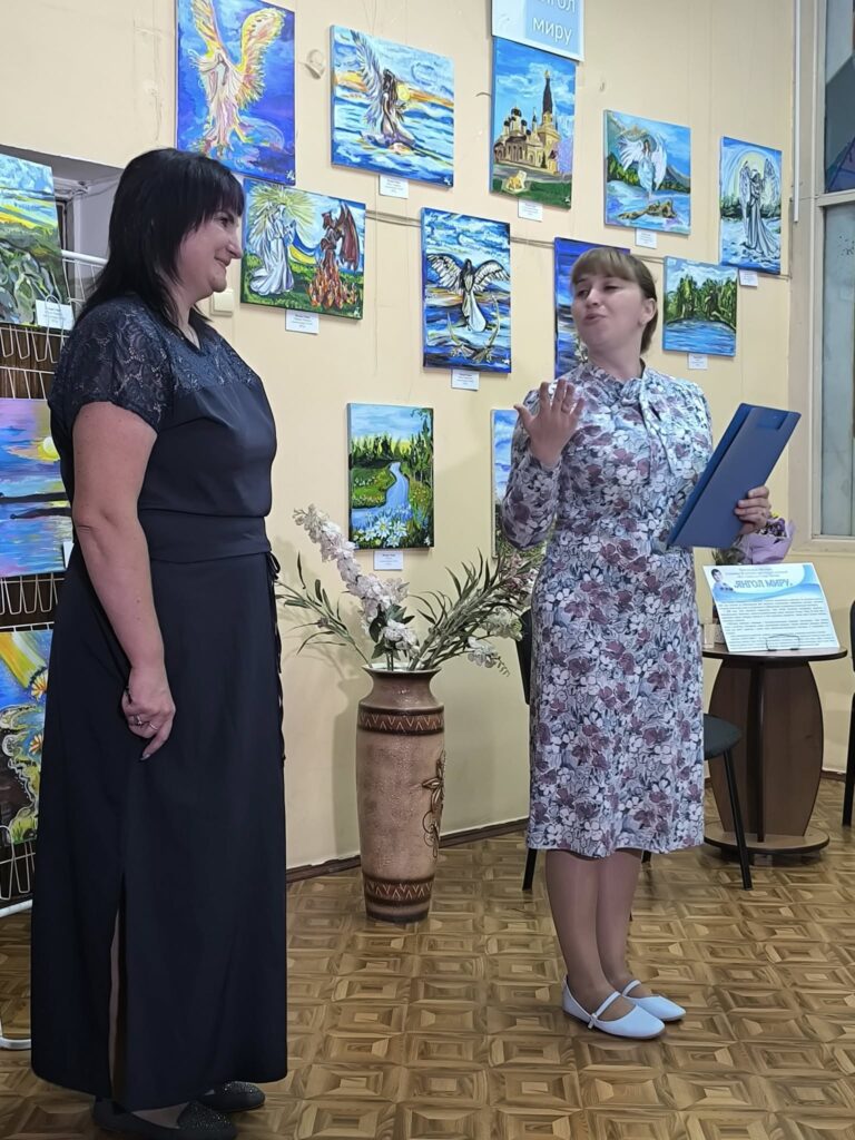 23 вересня у Бібліотеці-філії 12 ЦМБ ім. Кропивницького м. Миколаєва відбулось відкриття персональної виставки “Янгол миру” художниці Ганни Петрик.