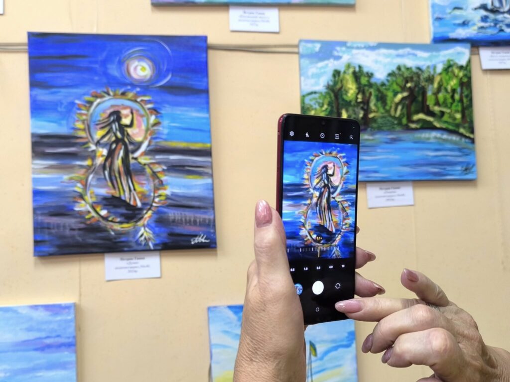 Також художниця представила живописні пейзажі мальовничих краєвидів Миколаєва та області. У картинах пані Ганна використовує переважно палітру синьо-блакитних кольорів – символ води й мирного неба.