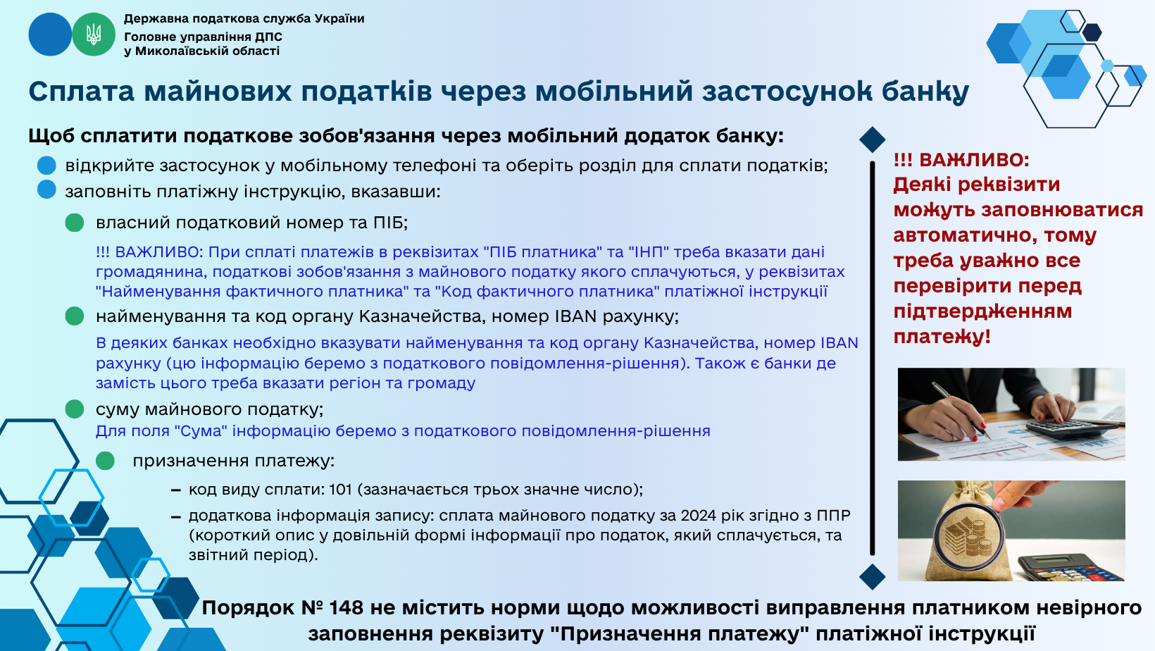 Головне правління ДПС у Миколаївській області інформує платників, що для спрощення процесу сплати податків ДПС України підготувала для громадян пам’ятку з детальними інструкціями щодо сплати податкових зобов’язань з майнових податків.