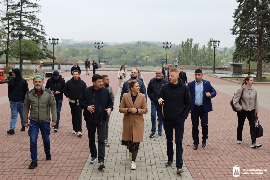 Начальник Миколаївської ОВА Віталій Кім, заступник міського голови Сергій Коренєв разом з головою офісу посольства Данії в Миколаєві Якобом Хансеном ознайомили іноземних партнерів з історією міста, провівши пішу екскурсію центром.