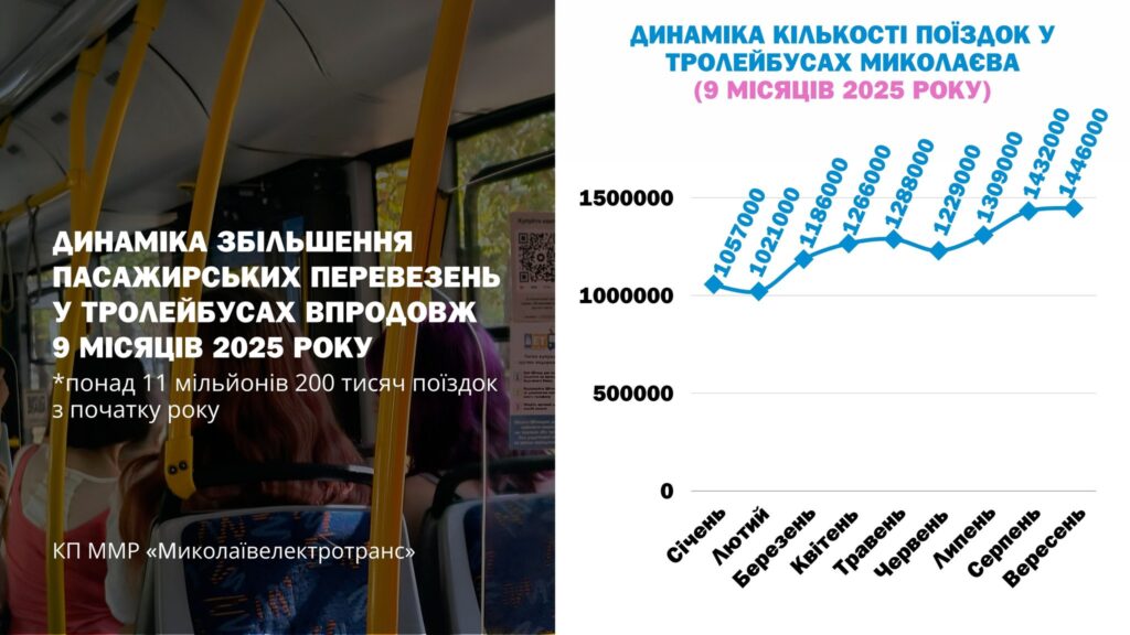Динаміка зростання кількості перевезень має вже стійку тенденцію — якщо на початку року було зафіксовано 1 мільйон 57 тисяч поїздок, то у вересні кількість поїздок сягнула понад 1 мільйон 446 тисяч.