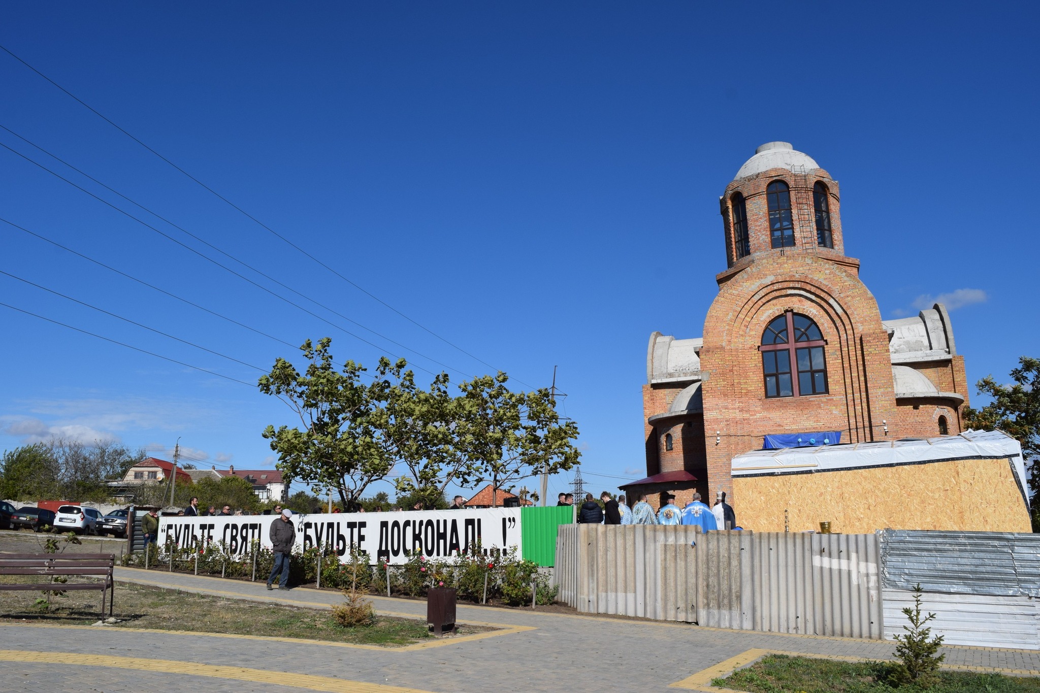 З цієї нагоди біля стін храму Покрови Пресвятої Богородиці, який наразі перебуває в стані зведення, відбулася урочиста Божественна Літургія, яку очолив владика Михаїл Бубній, Екзарх Одеський.