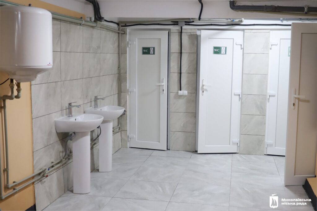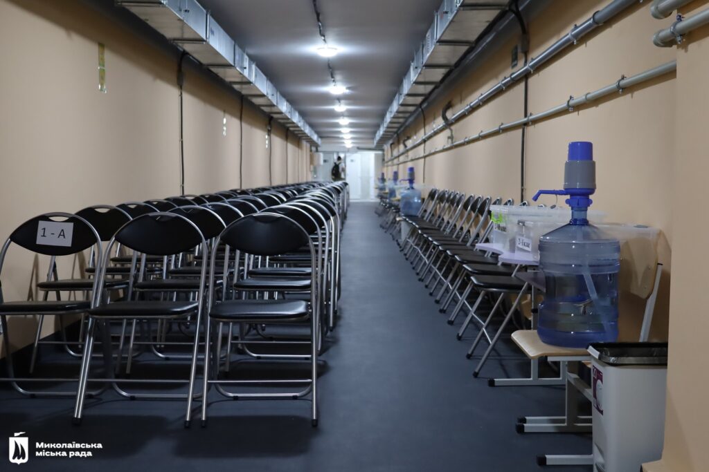 В приміщенні облаштували стіни, стелю, підлогу. Провели світло та інтернет, встановили вентиляційну систему з можливістю регулювання температури повітря. Є резервне живлення всіх систем на випадок відключення світла. Тут також облаштували медичний куточок та шість туалетних кімнат, дві з яких – інклюзивні. Приміщення оснащене меблями. Є необхідний запас питної води.