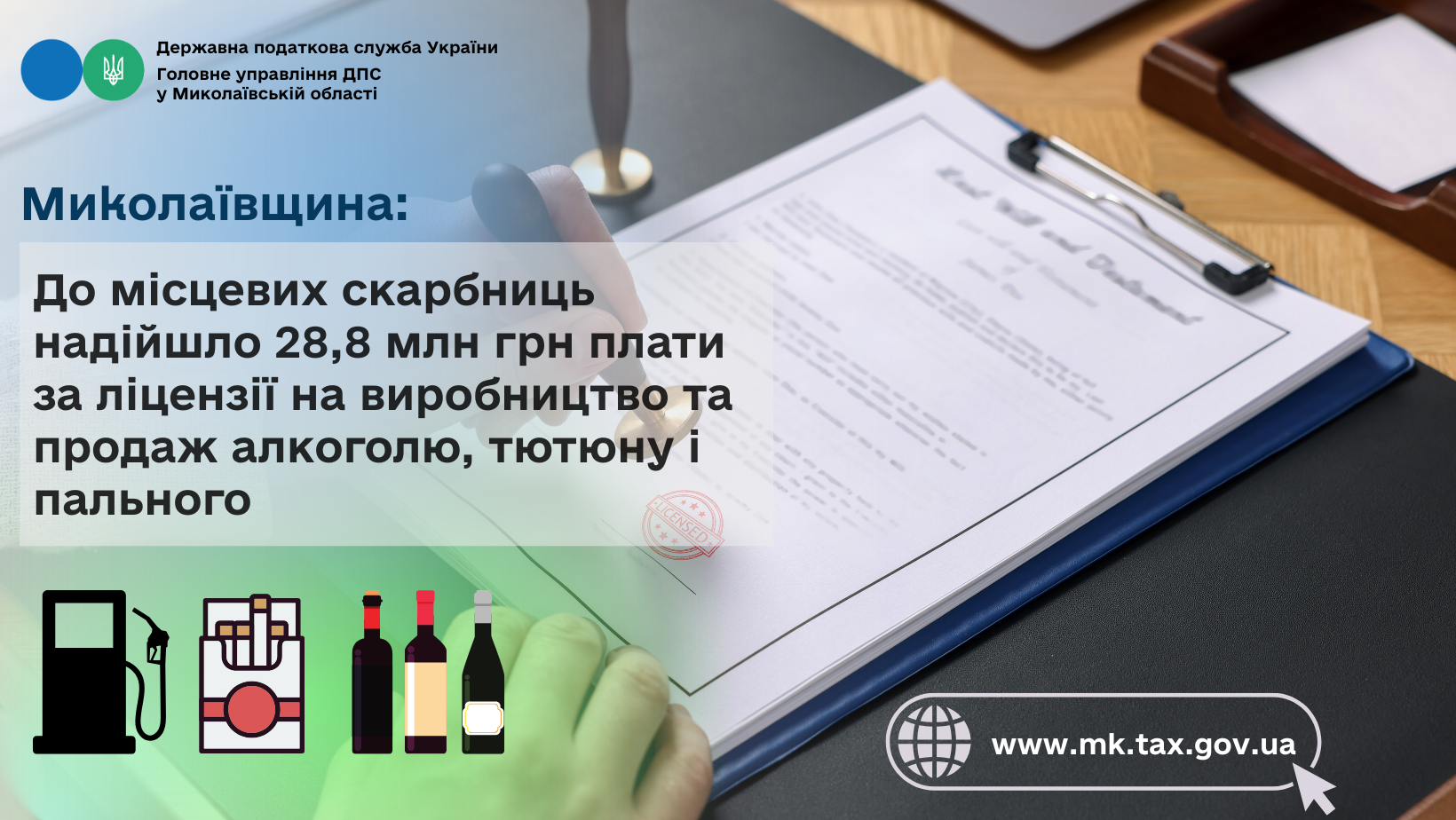 До місцевих бюджетів Миколаївщини надійшло 28,8 млн грн плати за ліцензії на виробництво та продаж алкоголю, тютюну і пального