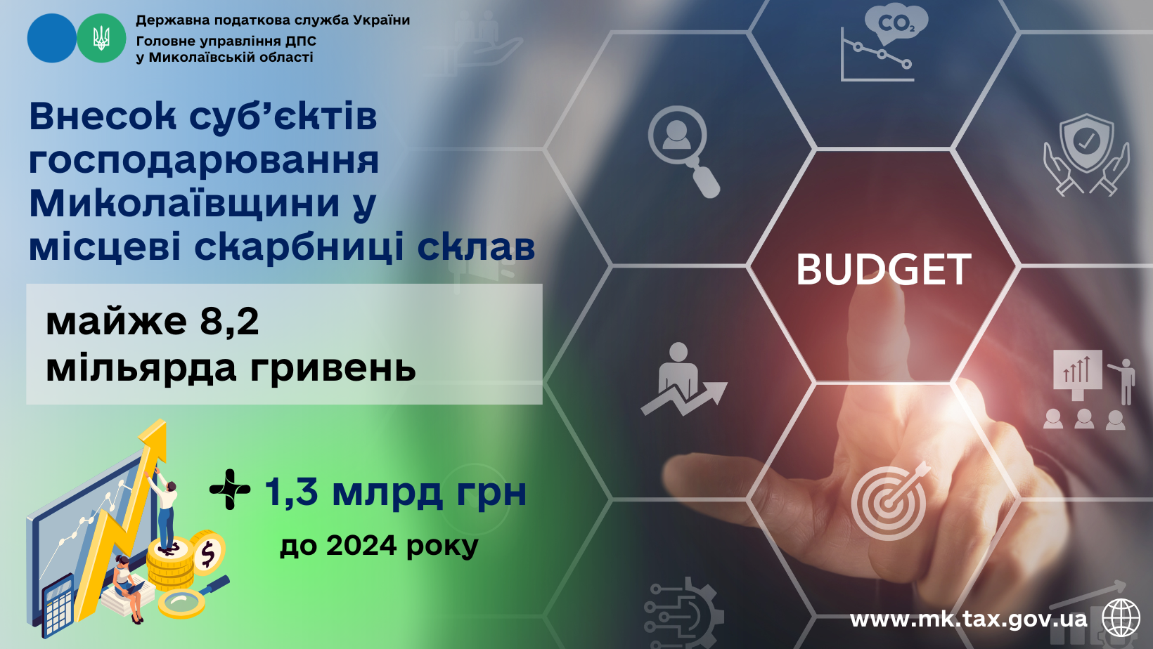 Внесок суб’єктів господарювання Миколаївщини у місцеві бюджети склав майже 8,2 млрд грн