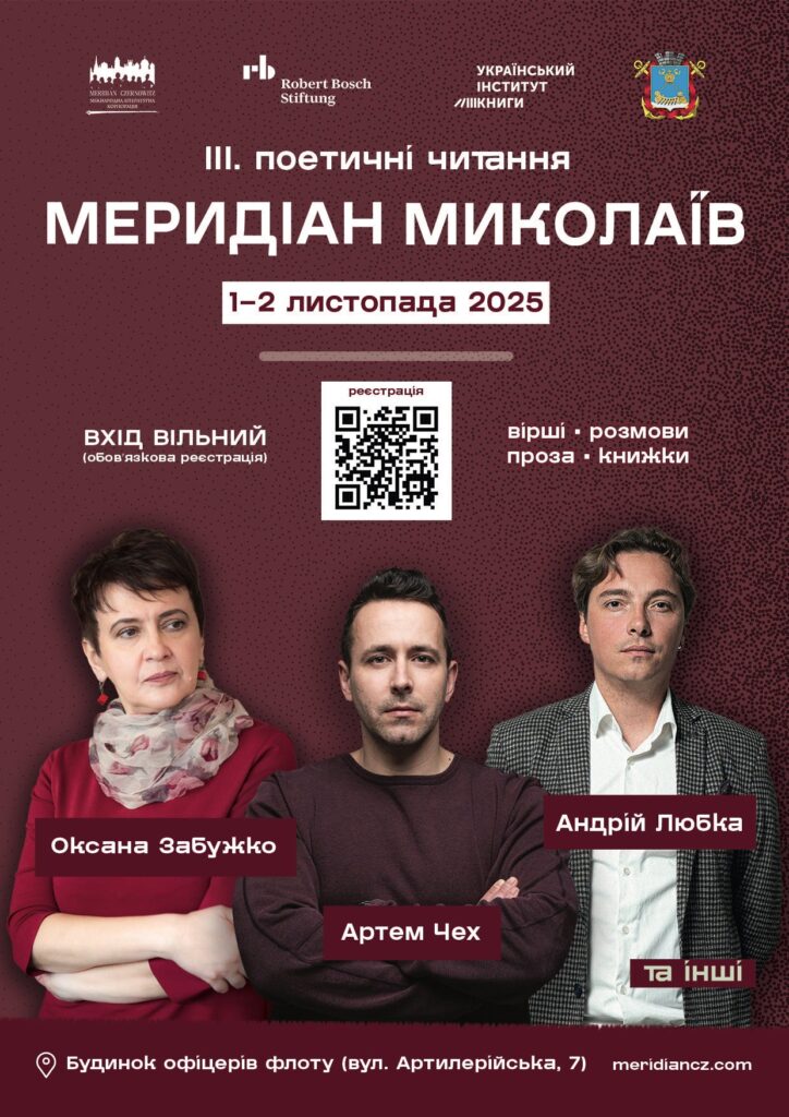 1–2 листопада 2025 року у Миколаєві та Одесі відбудуться літературні фестивалі, організовані Міжнародною літературною корпорацією Meridian Czernowitz та покликані посилити культурну присутність сучасної української літератури в містах, що стали символами незламності.