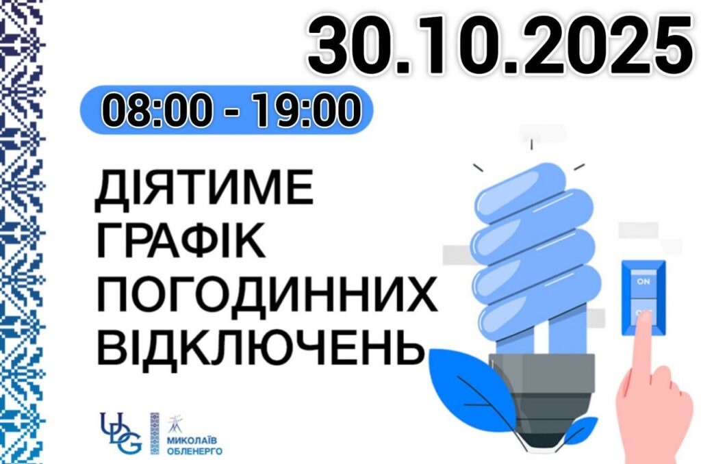 Внаслідок масованої ракетно-дронової атаки на енергетичну інфраструктуру України, в Миколаївській області з 08:00 відміняється графік аварійних відключень (ГАВ). Натомість вводиться графік погодинних відключень (ГПВ).