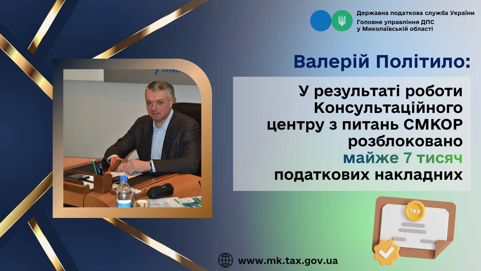 Валерій Політило: У результаті роботи Консультаційного центру з питань СМКОР розблоковано майже 7 тисяч податкових накладних