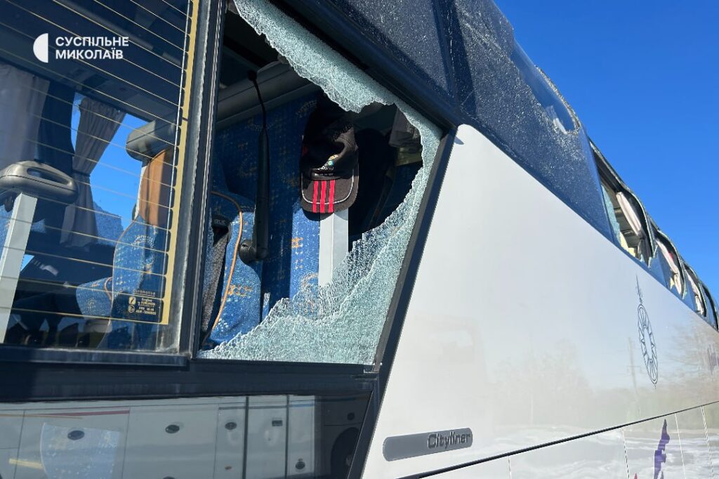 Під час ракетної атаки на Миколаїв постраждали два автобуси, які були на АЗС (ФОТО)