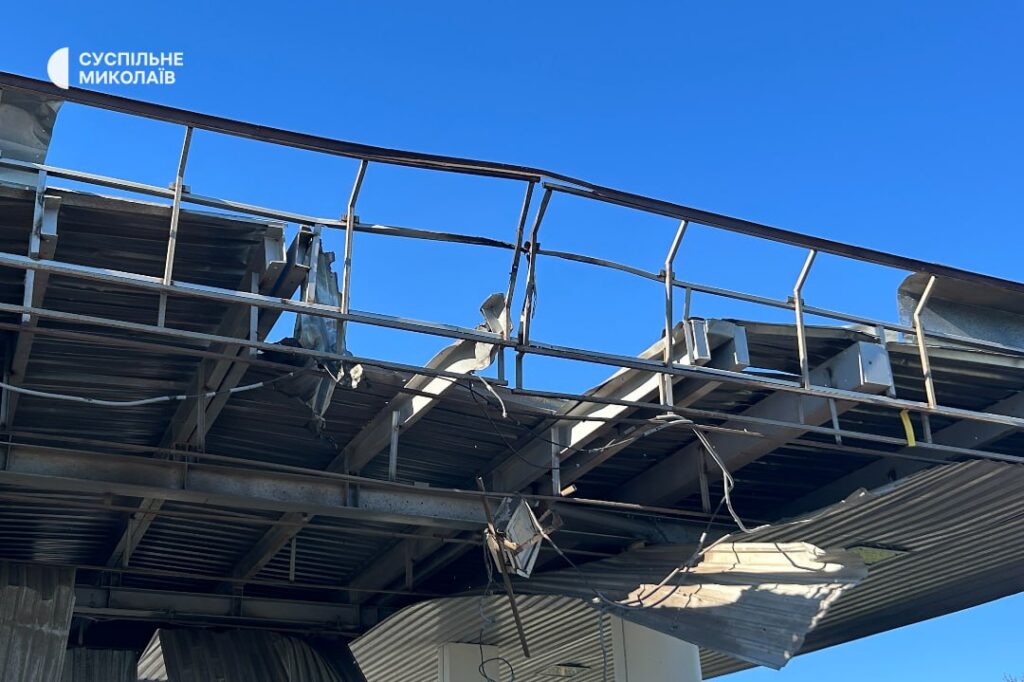 Голова Миколаївської ОВА Віталій Кім опублікував фото і відео, з яких стає зрозумілим, що від вибухової хвилі постраждала АЗС.