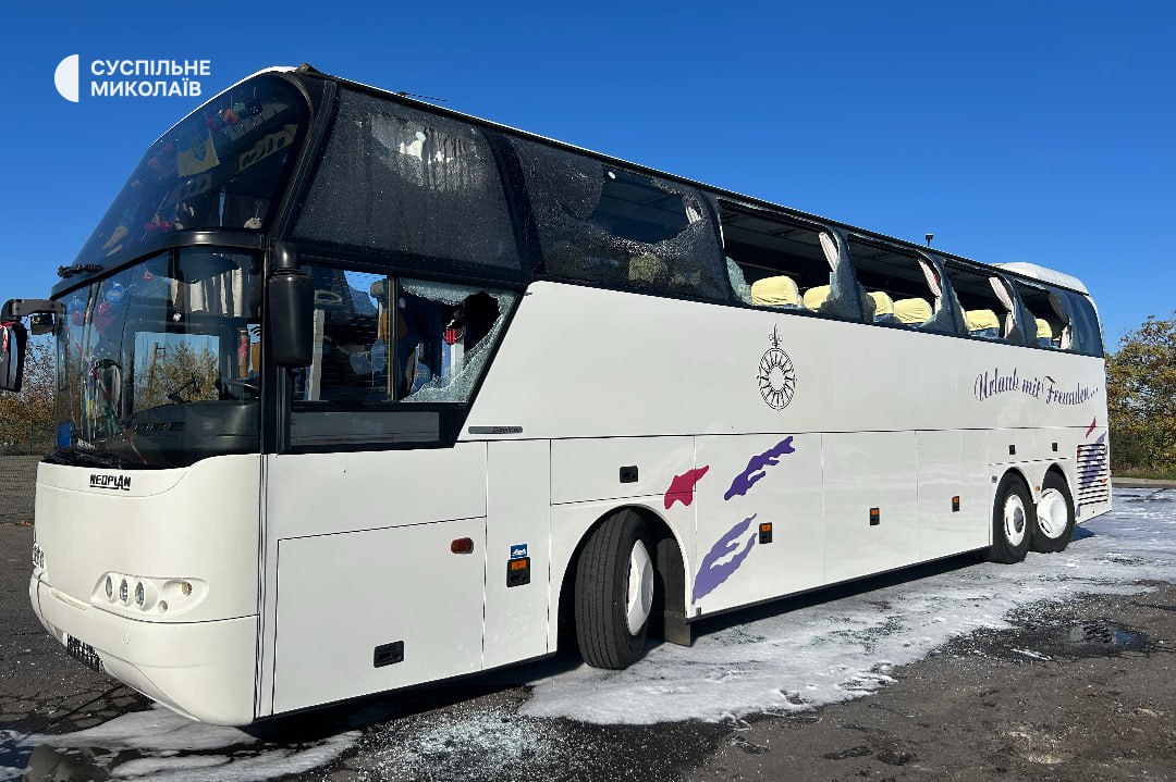 Під час ракетної атаки на Миколаїв постраждали два автобуси, які були на АЗС (ФОТО)