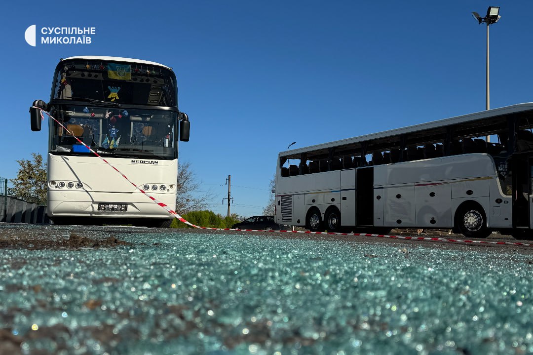 Під час ракетної атаки на Миколаїв постраждали два автобуси, які були на АЗС  (ФОТО)