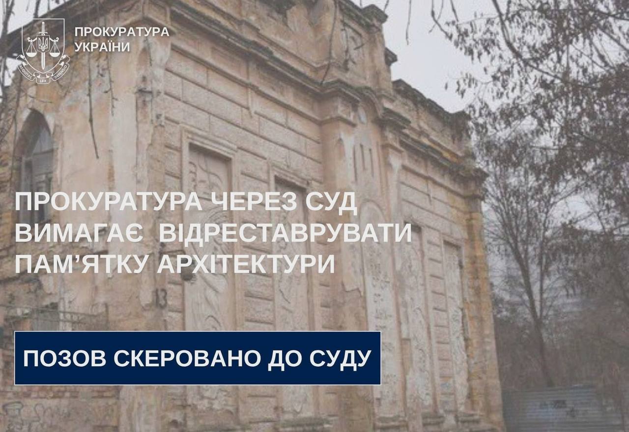 Окружна прокуратура міста Миколаєва пред’явила позов до власника пам’ятки архітектури місцевого значення «Синагога. 1822 рік» у Миколаєві про зобов’язання провести першочергові заходи щодо приведення об’єкту до належного стану.
