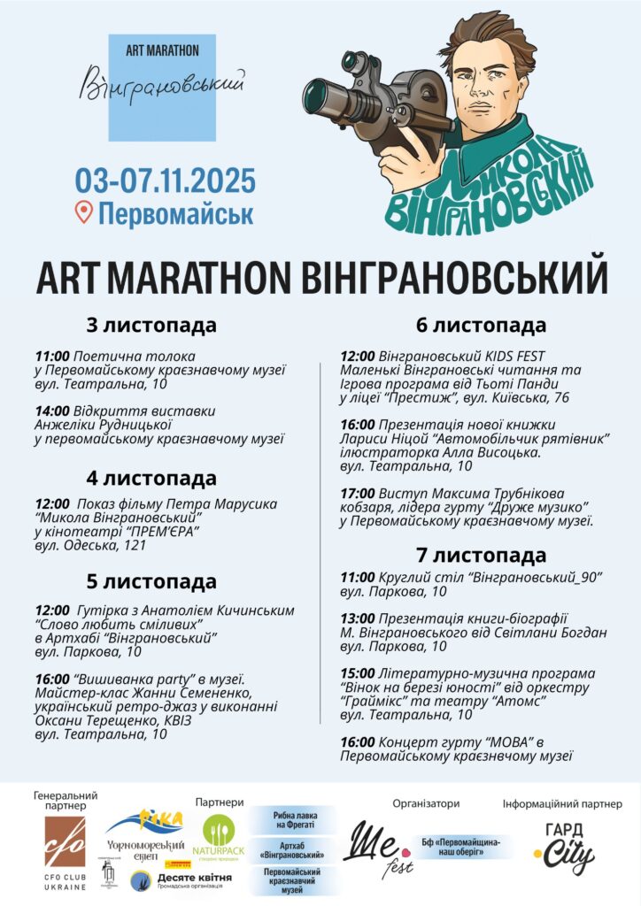 3-7 листопада у місті Первомайську пройде ВІНГРАНОВСЬКИЙ ART MARATHON. Це вже третій за рахунком фестиваль, присвячений Миколі Вінграновському.