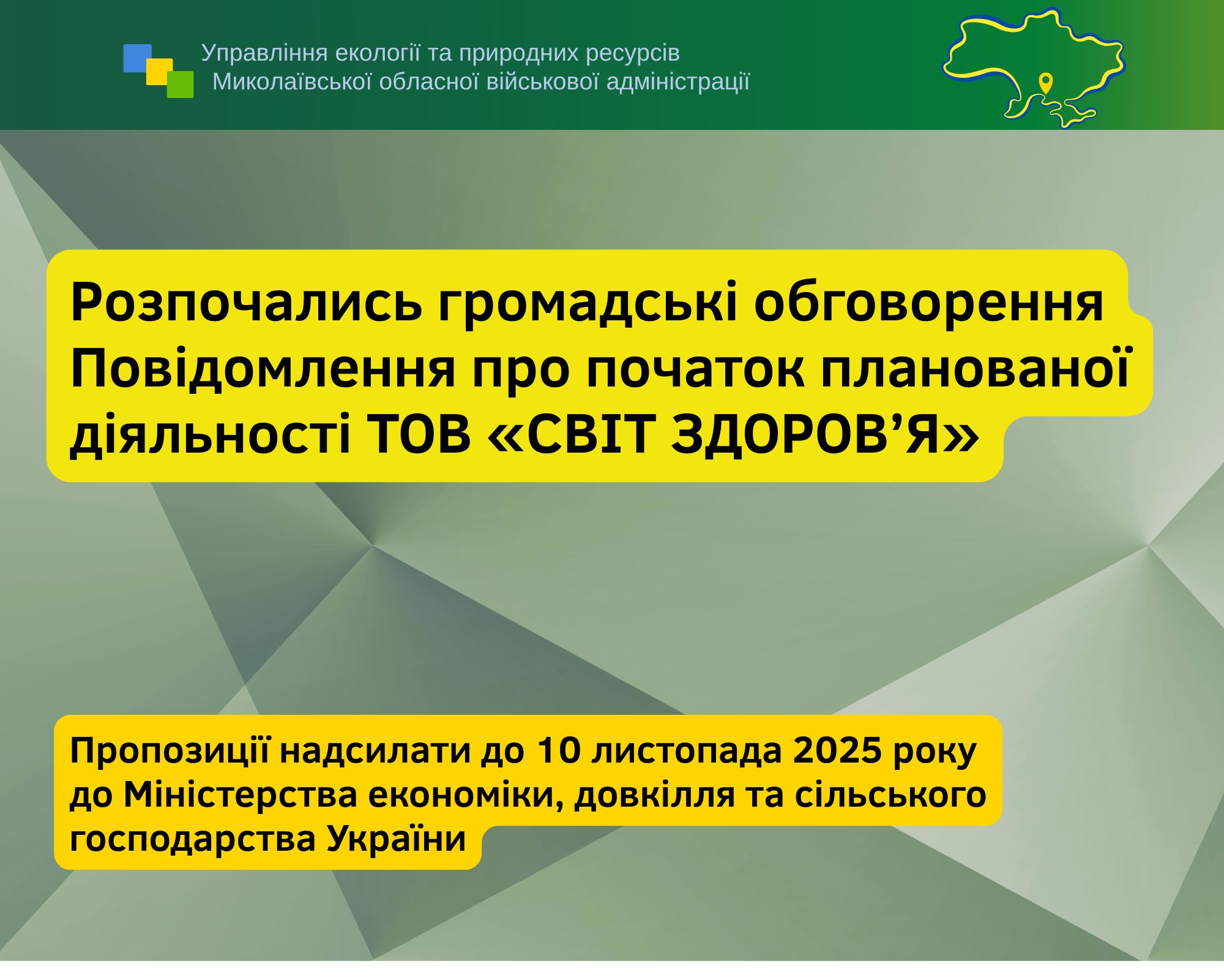 Розпочалися громадські обговорення Повідомлення про початок планованої діяльності ТОВ «СВІТ ЗДОРОВ’Я».