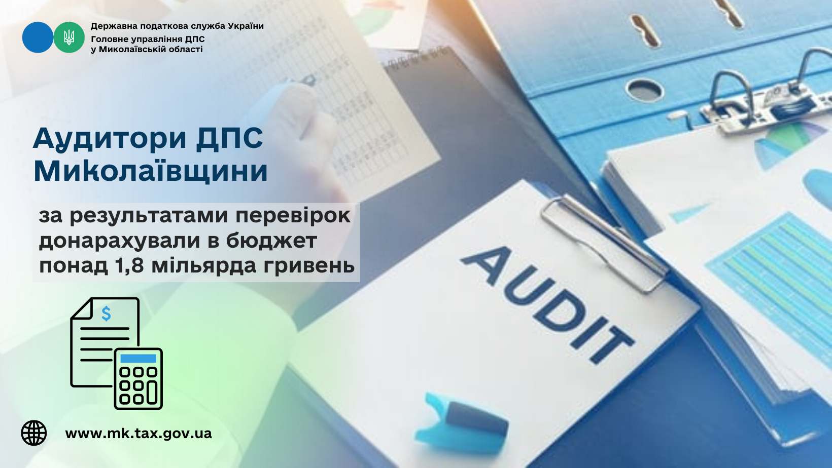 У січні – жовтні 2025 року підрозділом податкового аудиту Головного управління ДПС у Миколаївській області проведено 676 документальних та фактичних перевірок. За результатами перевірок до бюджету донараховано грошових зобов’язань у сумі 1,8 млрд грн, узгоджено грошових зобов’язань за актами поточного та минулих років – 1,1 млрд грн, сплачено (погашено) донарахованих сум – 46,7 млн гривень.
