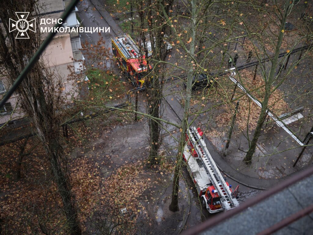 За інформацією ГУ ДСНС України у Миколаївській області, внаслідок падіння БпЛА та його уламків на дах дев’ятиповерхового житлового будинку загорілась ліфтова шахта.