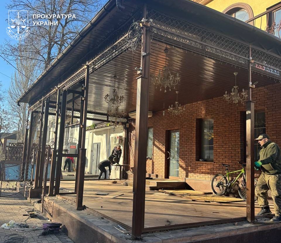 Як повідомляє Миколаївська обласна прокуратура, зазначену споруду – прибудову до першого поверху кав’ярні у центрі Миколаєва, самовільно та незаконно збудовано товариством без визначених законом документів на будівництво на самовільно зайнятій земельній ділянці комунальної власності, та зареєстровано право власності на неї.