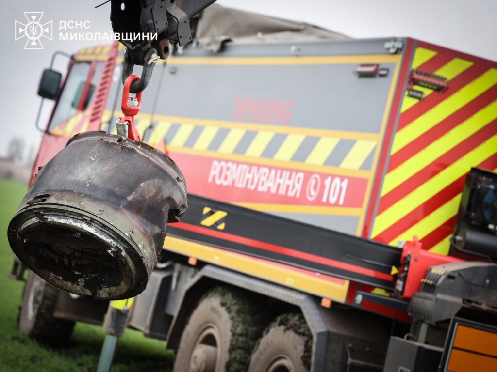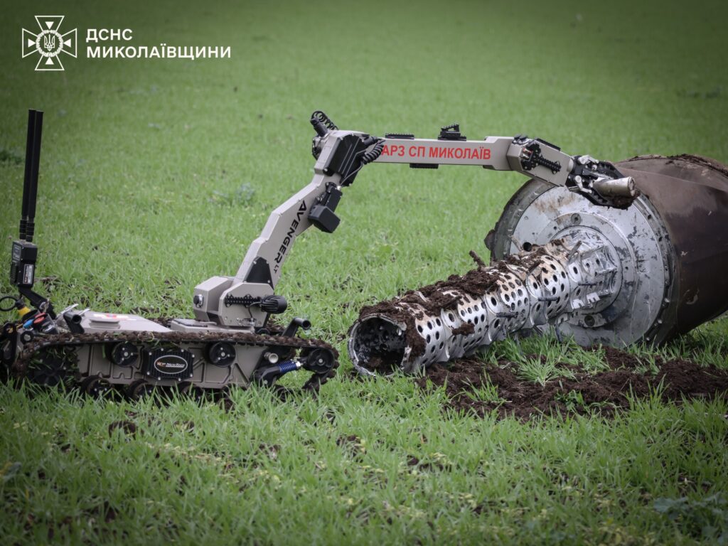 Далі піротехніки працювали із використанням броньованого піротехнічного автомобіля з маніпулятором, за допомогою якою вилучили та транспортували інші безпечні уламки ракети.