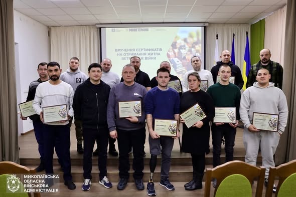 На Миколаївщині 25 ветеранів війни та членів родин загиблих Захисників і Захисниць України отримали сертифікати на придбання житла. Загальна сума державної підтримки склала 60,8 млн гривень.