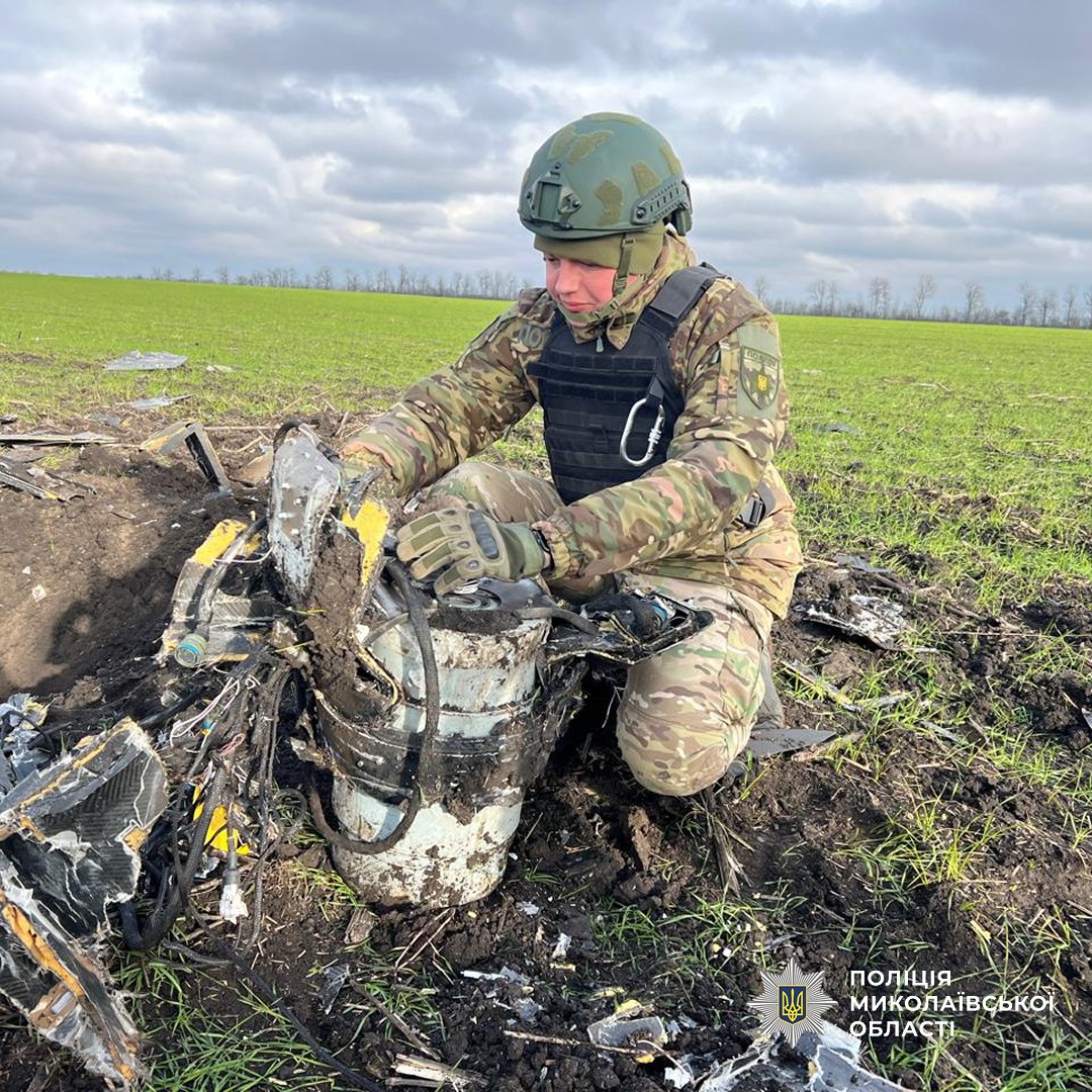 На місце події оперативно прибули фахівці управління вибухотехнічної служби обласного главку поліції Миколаївщини. Під час огляду території поліцейські встановили, що це частини ворожого безпілотного літального апарату із бойовою частиною, яка не здетонувала під час падіння та становила реальну загрозу життю і здоров’ю людей.