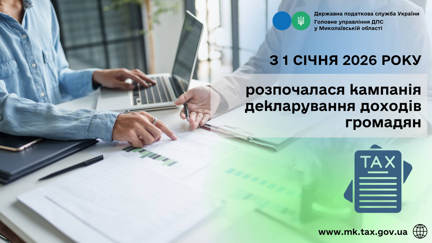 Головне управління ДПС у Миколаївській області повідомляє, що з 01 січня 2026 року стартувала кампанія декларування громадянами доходів, отриманих упродовж 2025 року.