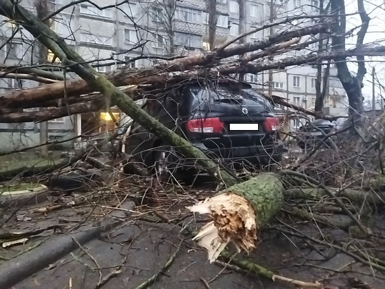 Як повідомив мешканець двору, подія сталася біля будинку по вулиці Колодязна, 16. Дерева впало на припаркований кросовер марки Ssang Yong. На щастя, всередині машини нікого не було.