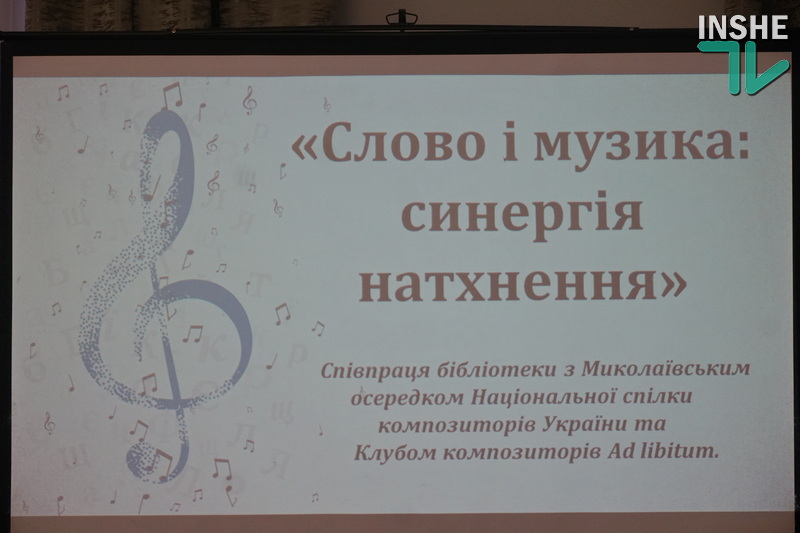 Миколаївська обласна універсальна наукова бібліотека, яка у листопаді цього року відзначить своє 145-річчя, вже давно співпрацює з миколаївським Клубом композиторів Ad libitum. Творчі вечори, фестивалі, презентації монографій, музичні зустрічі – за майже 10 років плідної співпраці (а саме стільки виповниться Клубу композиторів у грудні цього року) було організовано і проведено сотні заходів. Сьогодні ж містяни мали змогу не тільки почути про історію Ad libitum, а й послухати твори миколаївських композиторів.