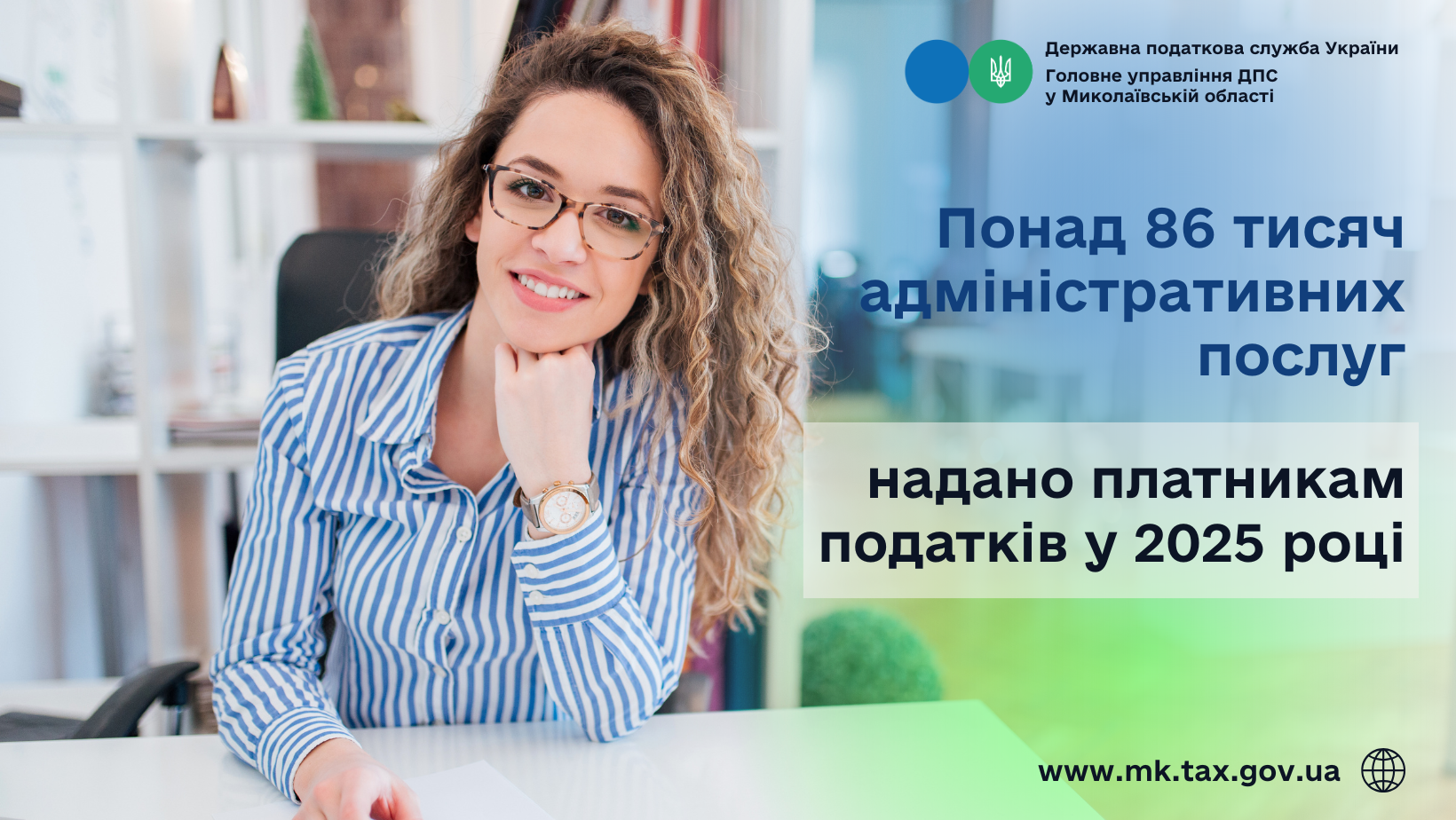У січні – грудні 2025 року платники податків Миколаївщини отримали понад 86 тисяч адміністративних послуг. Про це повідомили в управлінні податкових сервісів Головного управління ДПС у Миколаївській області.