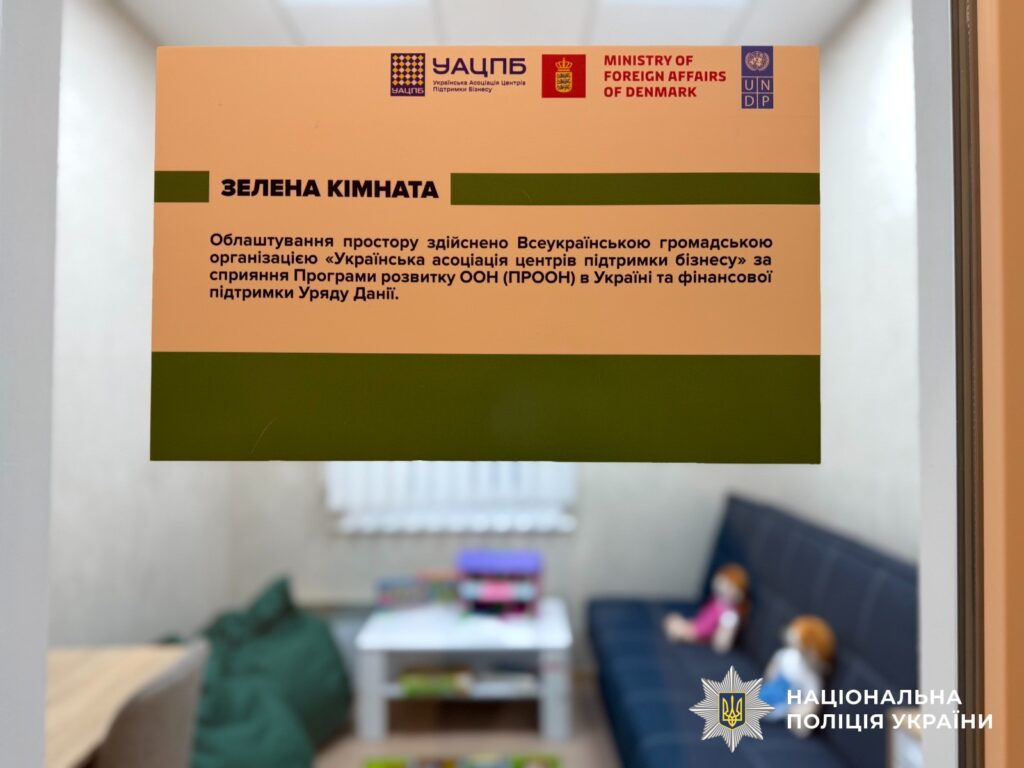 –             «Зелена кімната» — це безпечний та дружній простір, у якому правоохоронці й фахівці можуть поспілкуватися з дитиною, не травмуючи її психологічно. Тут усе облаштовано так, щоб малеча почувалася спокійно та довірливо: зручні меблі, ігрові та творчі матеріали допомагають встановити контакт і дати дитині можливість відверто розповісти про пережите. У такій атмосфері діти значно швидше заспокоюються, менше хвилюються та охочіше йдуть на контакт. Саме тому ми продовжуємо впровадження проєкту та розширюємо мережу таких кімнат в обласному центрі та області. Дякуємо міжнародним партнерам за всебічну підтримку у створенні безпечного простору, – зазначив начальник управління превентивної діяльності Дмитро Голобір.