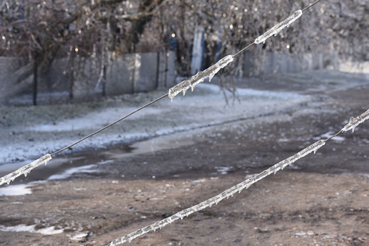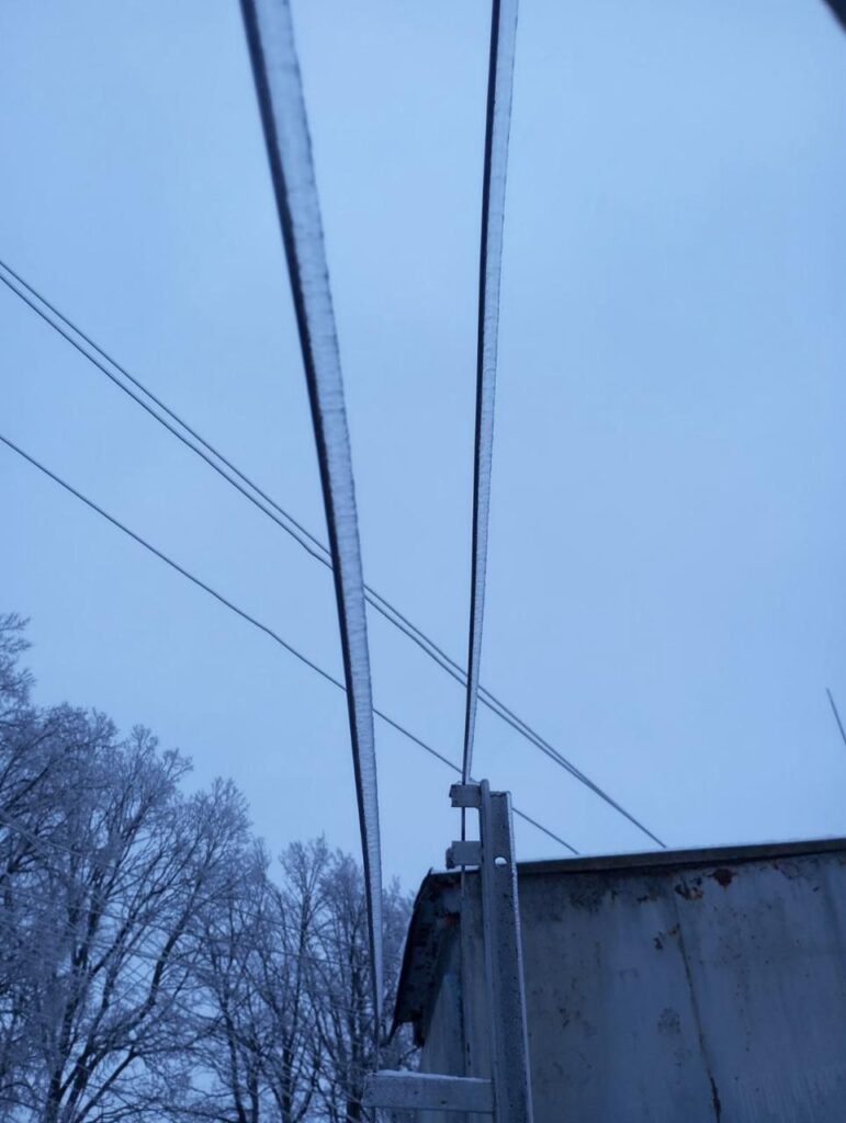 Електрики фіксують зледеніння дротів та опор.