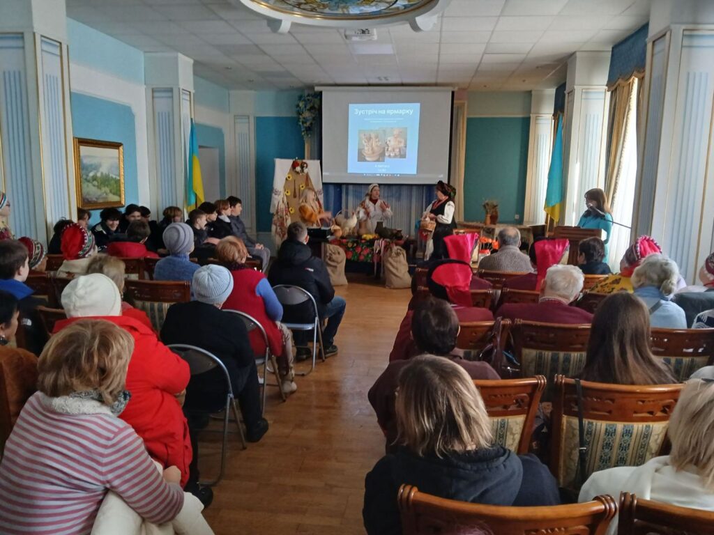 Відкриття відбулося у стилі українського ярмарку — веселого, колоритного й самобутнього, що повністю відповідало назві та настрою робіт, представлених на виставці. Особливу атмосферу свята створили учасники фольклорного ансамблю «Джерело надії» (керівник Надія Буданцева): їхні щирі пісні наповнили залу живою енергією української традиції та додали ярмаркового колориту.