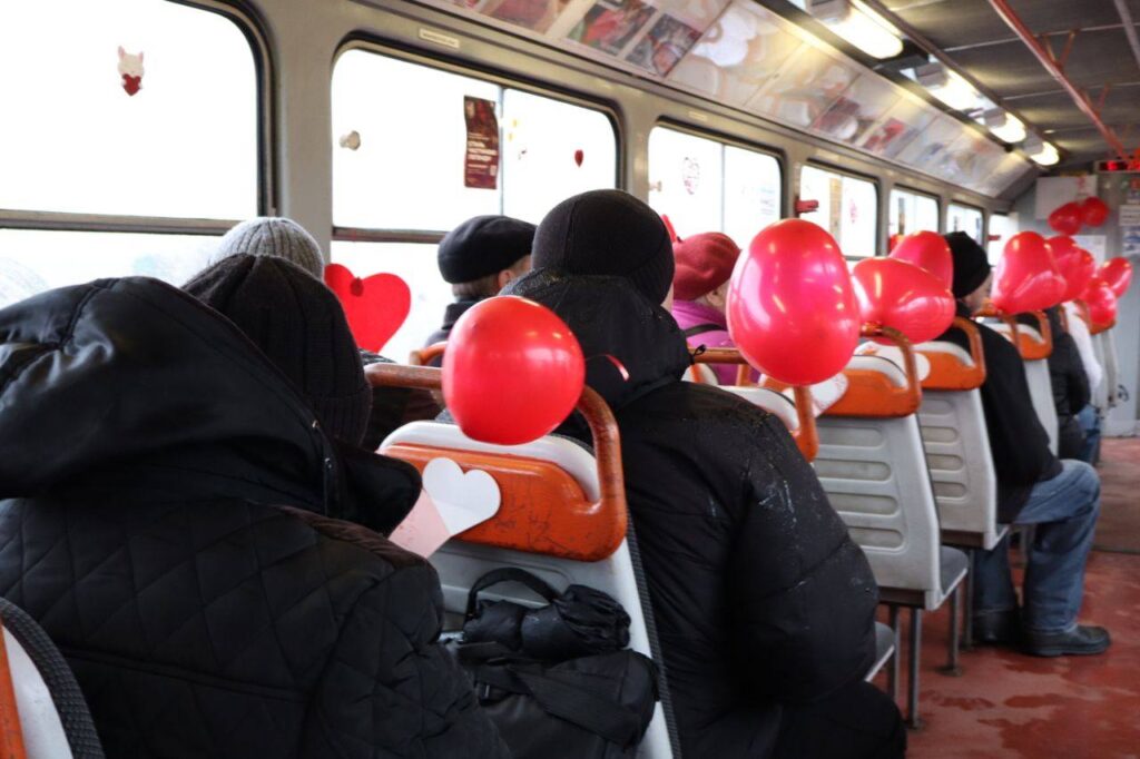 Сьогодні, 14 лютого, на маршрут №6 вийшов святково прикрашений вагон №1111, який даруватиме пасажирам атмосферу тепла та романтики просто під час поїздки містом.
