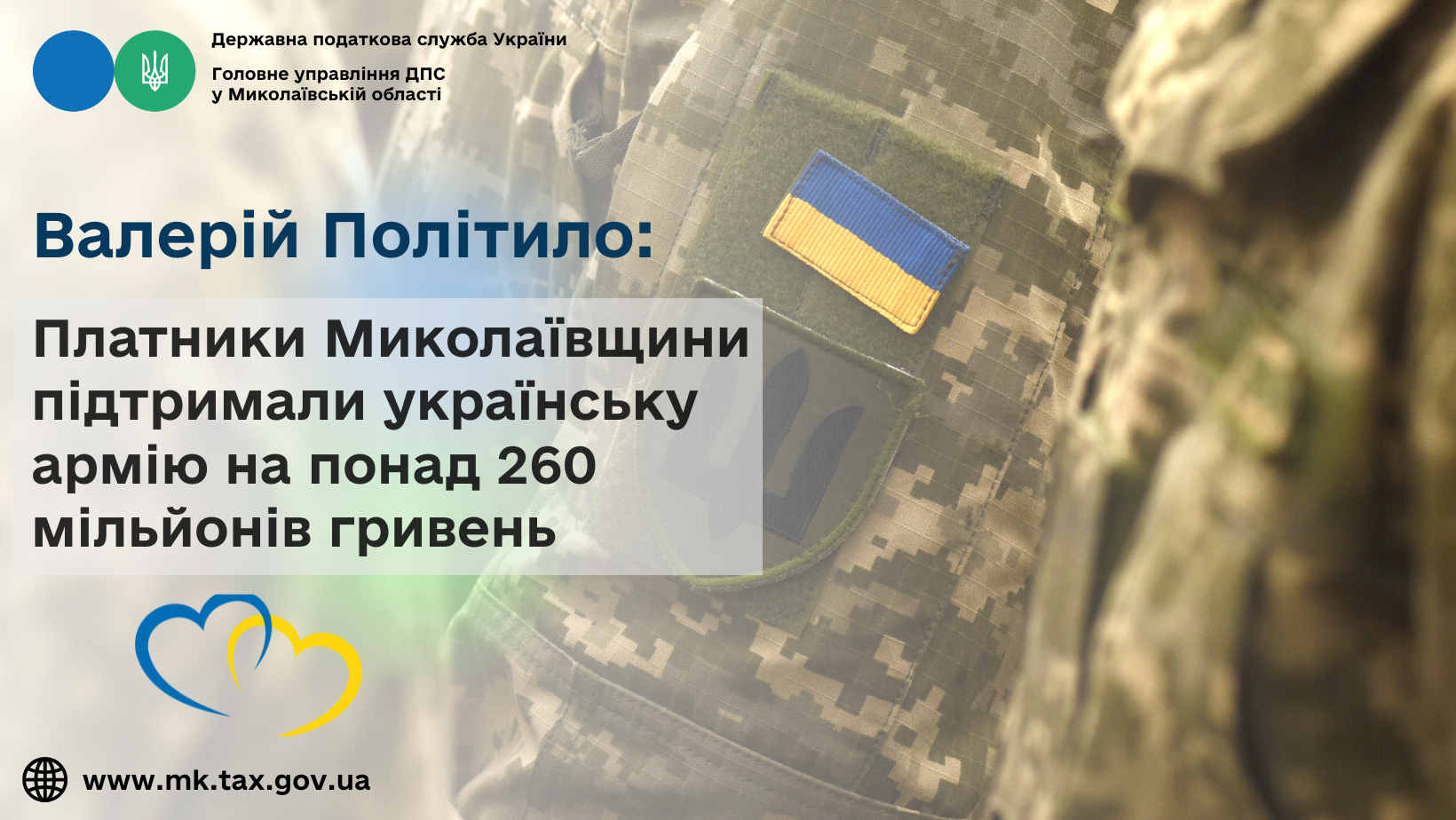 Платники податків Миколаївщини активно підтримують Збройні Сили України, сумлінно та прозоро сплачуючи військовий збір.