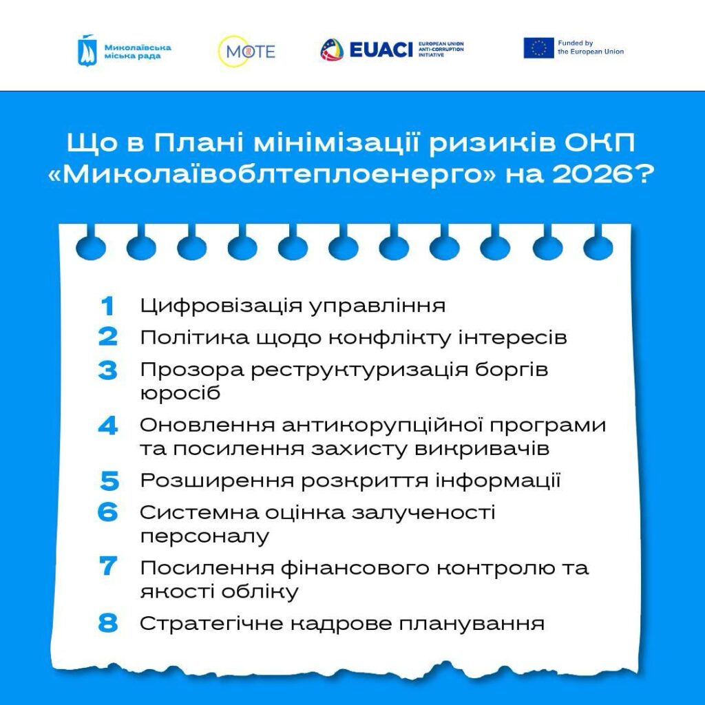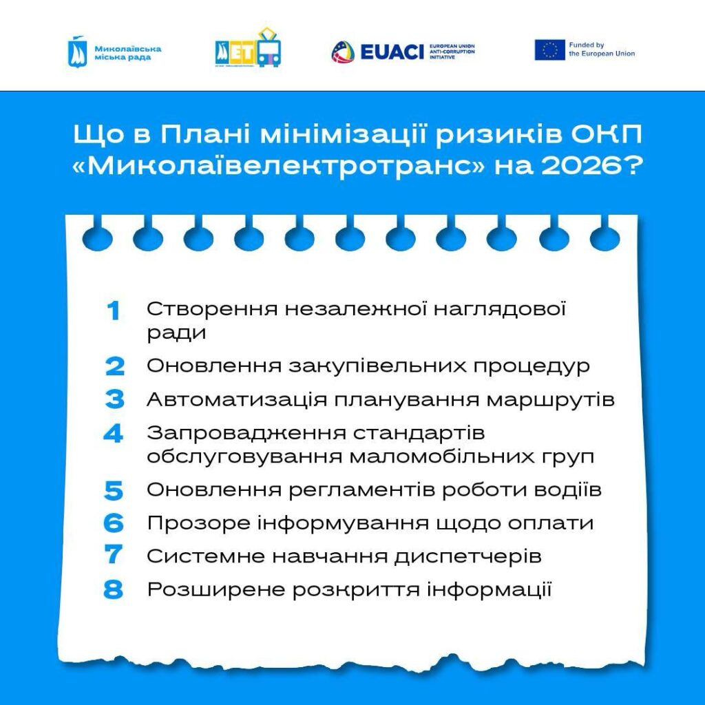 Після проведення комплексної Оцінки доброчесності двох стратегічних підприємств міста – ОКП «Миколаївоблтеплоенерго» та КП «Миколаївелектротранс» – міська влада переходить до етапу впровадження змін.