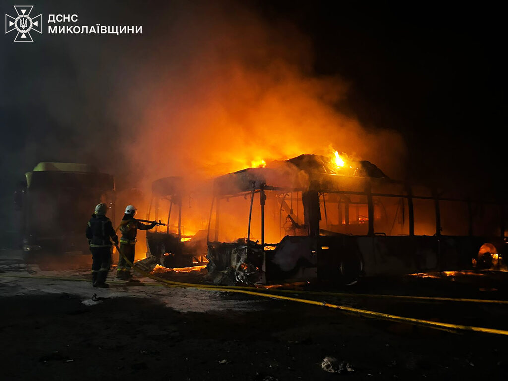 попередньо внаслідок короткого замкнення електричного вузла горіли 4 пасажирські автобуси на території одного з транспортних об’єктів м. Вознесенськ. Загальна площа склала 110 кв. м. Вогнеборцям вдалось запобігти розповсюдженню вогню на ще 6 поруч припаркованих транспортних засобів. На місці додатково працювали співробітники правоохоронних органів.