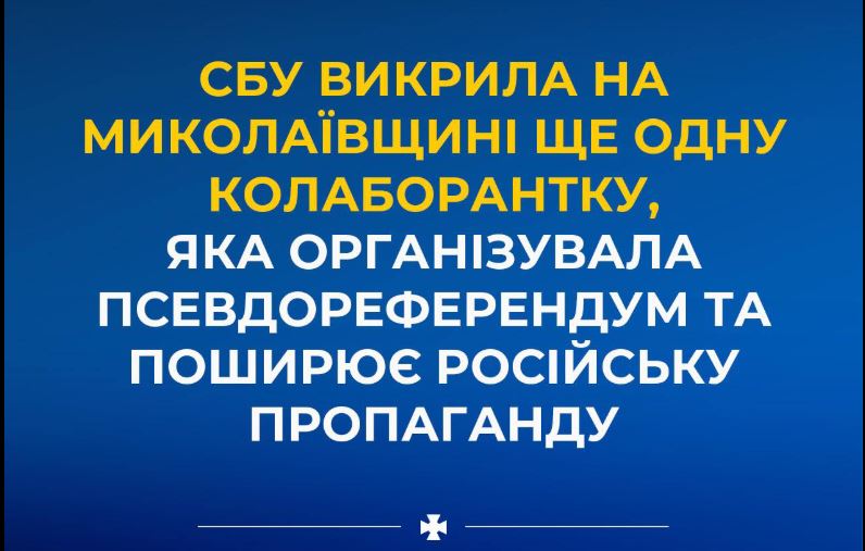 СБУ викрила на Миколаївщині ще одну колаборантку, яка організувала псевдореферендум та поширює російську пропаганду.