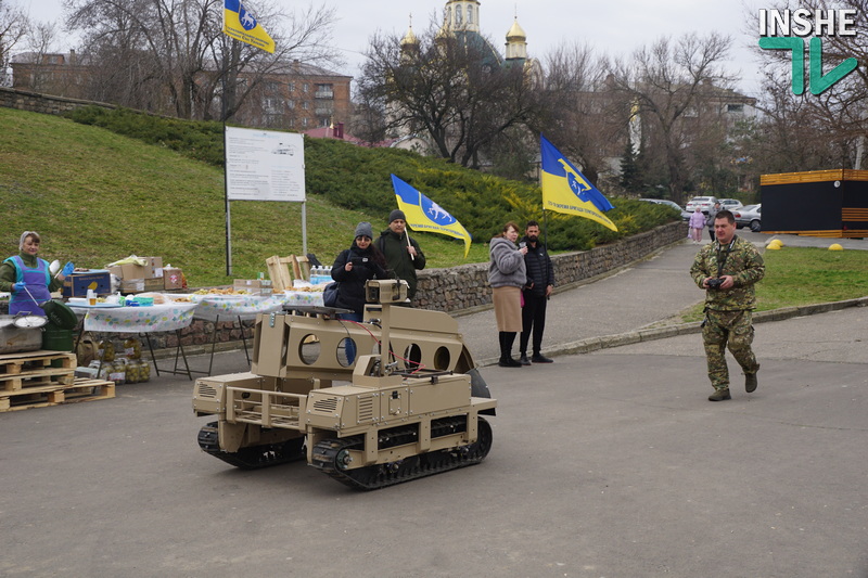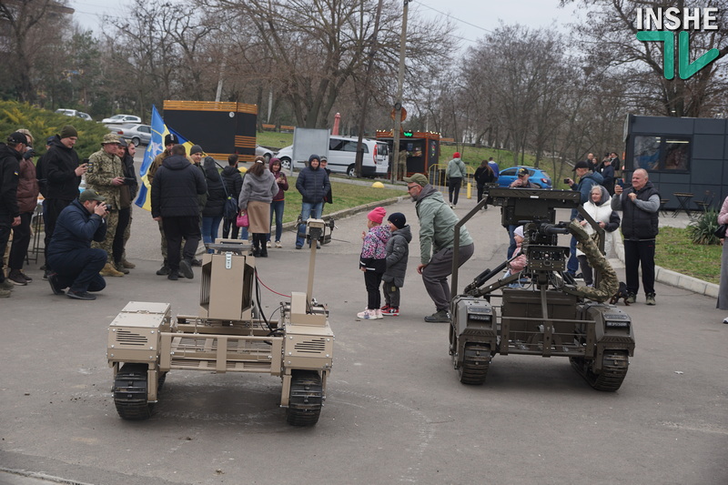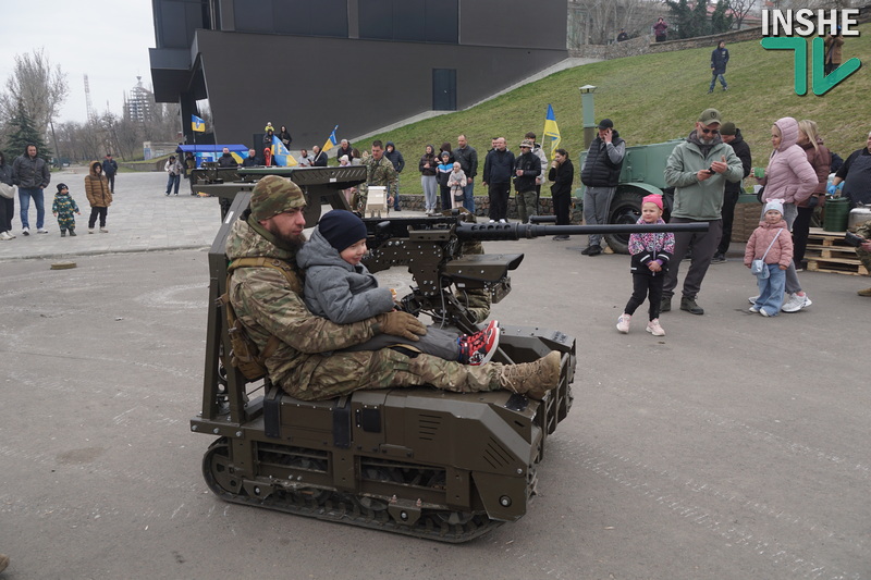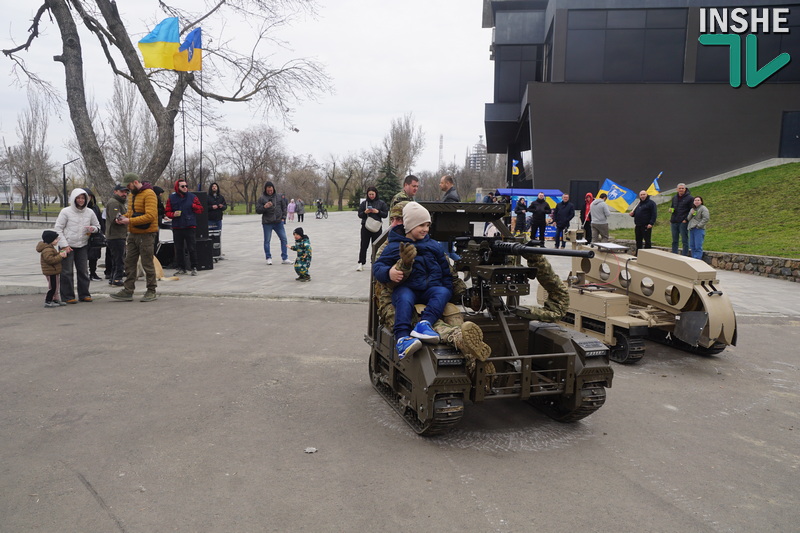 Тут на всіх учасників автопробігу та миколаївців чекали польова кухня та «показові виступи» НРК і дронів. В особливому захваті була малеча, яку навіть катали на одному з НРК. Та й у чоловіків була можливість поближче роздивитися техніку та навіть її помацати, а у рекрутінговому наметі надавали повні відповіді на запитання щодо переваг служби в бригаді.