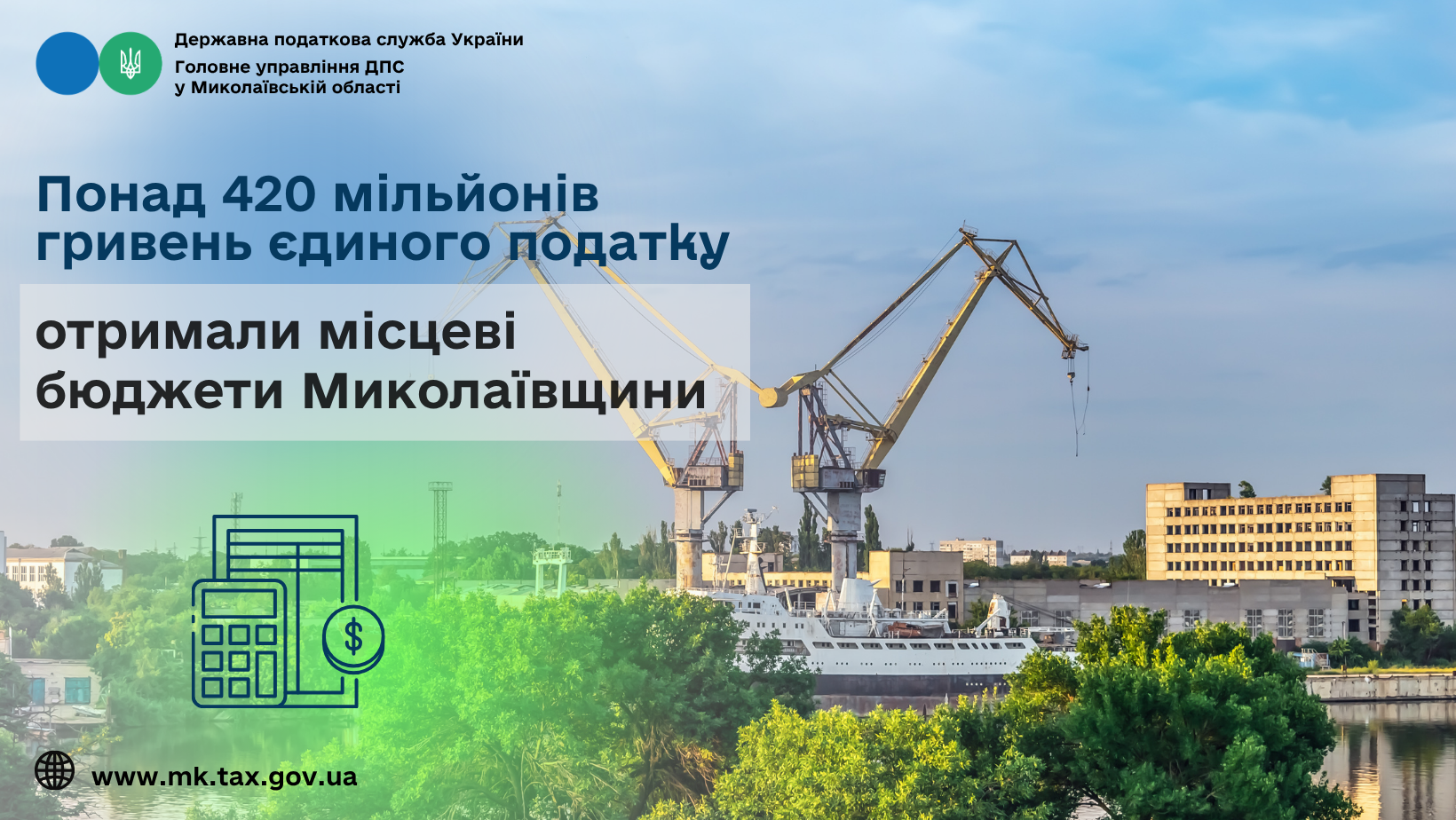 У січні – лютому 2026 року до місцевих бюджетів Миколаївщини забезпечено 421,3 млн грн єдиного податку, що на 10,2 відс., або на 39,1 млн грн більше, ніж у відповідному періоді минулого року.