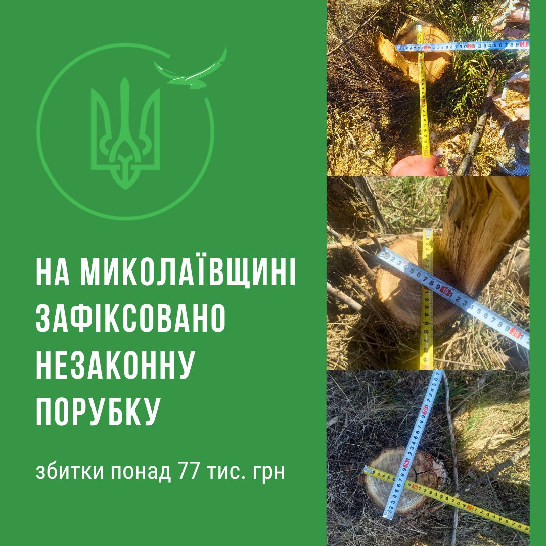 Державною екологічною інспекцією Південно-Західного округу виявлено факт незаконної порубки дерев у полезахисній лісовій смузі поблизу села Мішково-Погорілове Миколаївського району.