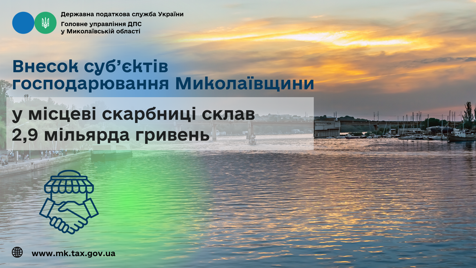 Внесок суб’єктів господарювання Миколаївщини у місцеві скарбниці склав 2,9 млрд грн