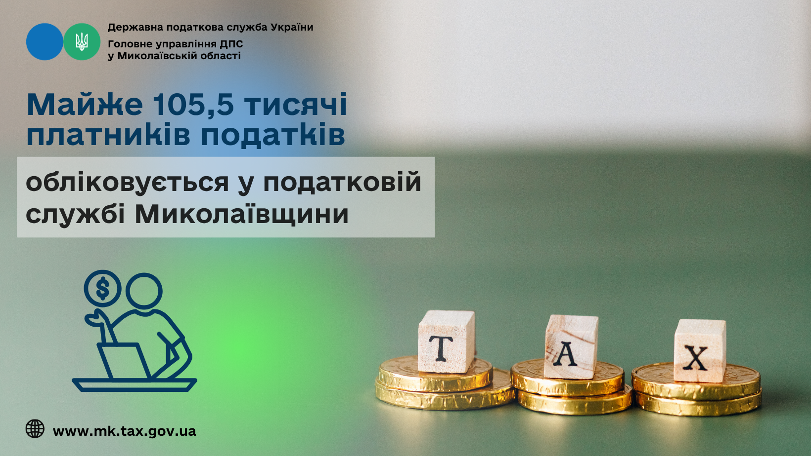 У податковій службі Миколаївщини обліковується майже 105,5 тисяч платників податків